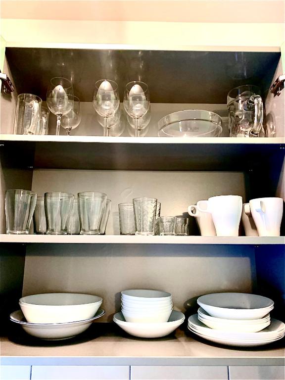 frižider, mašina za pranje veša, kuhinja, električno kuvalo, posuđe, rerna, ploča za kuvanje, toster, sto za ručavanje, čaše za vino